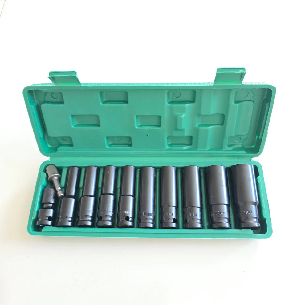 Set sadrži 13 delova različitih dimenzija, izrađenih od visokokvalitetnog hrom-vanadijum (Cr-V) čelika, idealnih za profesionalnu i kućnu upotrebu. U kompletu se nalaze gedore sa oznakama veličina od 10 mm do 24 mm, uključujući i dodatke poput univerzalnog zgloba i nastavka.